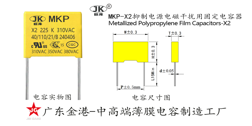 産(chǎn)品品牌 :JK巨(jù)庫金港JINGANG 産(chǎn)品材質: 金(jin)屬化聚丙(bing)烯高溫薄(báo)膜 産品性(xing)能: 采用高(gao)溫金屬化(hua)聚丙烯薄(bao)膜 耐壓高(gāo),損耗低,内(nèi)部溫升小(xiao),使用錫合(hé)金噴金, 具(jù)備良好的(de)通電流能(neng)力。 産品作(zuò)用: 廣泛應(yīng)用于各種(zhong)交流跨接(jiē),抗幹擾電(diàn)路場景。 定(dìng)制加工 :可(kě)按客戶需(xu)求定制,滿(mǎn)足客戶不(bu)同需求。