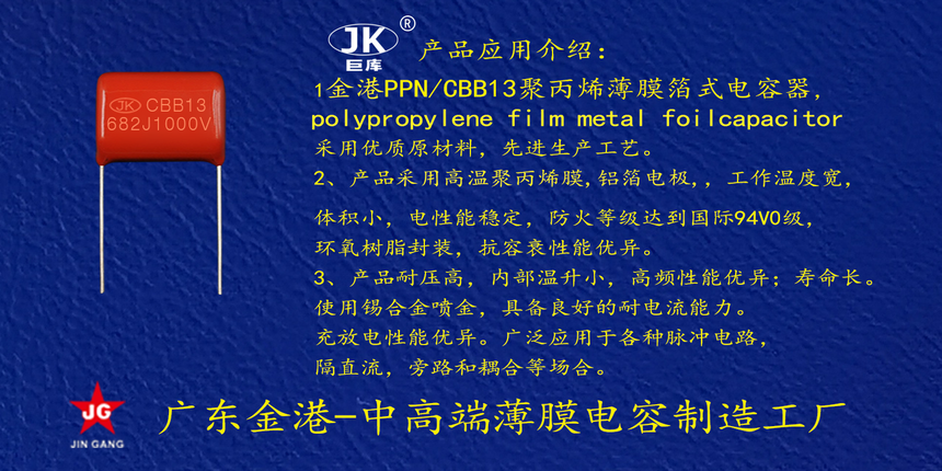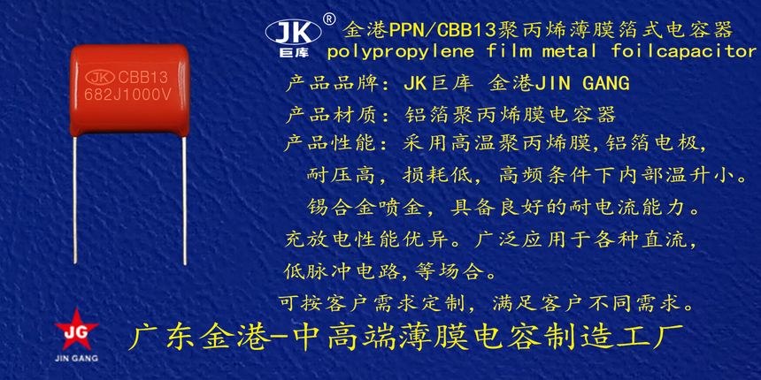 産品品牌(pai) :JK巨庫金港(gang)JINGANG 産品材質(zhi): 鋁箔聚丙(bing)烯膜電容(rong)器 産品性(xing)能: 采用高(gāo)溫聚丙烯(xī)膜,鋁箔電(dian)極耐壓高(gāo), 損耗低,i高(gao)頻條件下(xia)内部溫升(sheng)小錫合金(jīn)噴金, 具備(bèi)良好的耐(nai)電流能力(li)。充放電性(xìng)能優異。 産(chǎn)品作用: 廣(guǎng)泛應用于(yu)各種直流(liú),低脈沖電(diàn)路,等場合(hé)。 定制加工(gōng) :可按客戶(hu)需求定制(zhi),滿足客戶(hu)不同需求(qiú)。