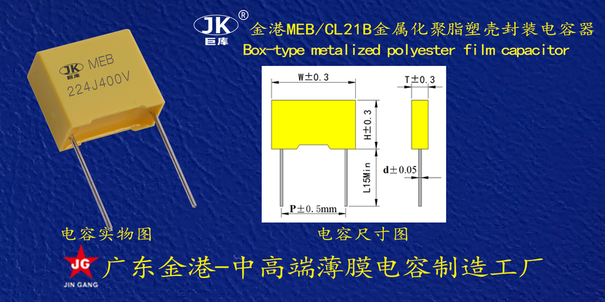 産品(pǐn)品牌 :JK巨庫(kù)金港JINGANG 産品(pǐn)材質: 高溫(wen)金屬化聚(ju)脂薄膜,塑(sù)料外殼封(fēng)裝 産品性(xing)能: 采用高(gao)溫金屬化(hua)聚脂薄膜(mó),耐壓高